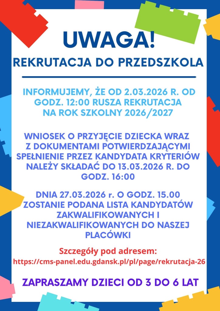Link do elektronicznej rejestracji dziecka do placówki: https://naborp-kandydat.edu.gdansk.pl/Gdansk